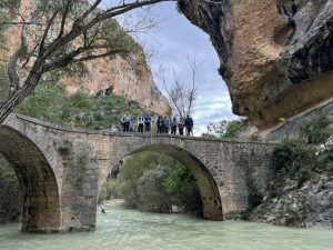 In the morning we drive around to the viewpoint of Portiacha which has spectacular views down into the Vero canyon. From here we hike back to Aluezar, passing three caves with neolithic cave art dating from 8000 to 3000 BC. We cross several side canyons, before dropping down into the Vero Canyon, crossing at the idyllic Puente de Villacantal before climbing back up to Alquezar. View the route video below.