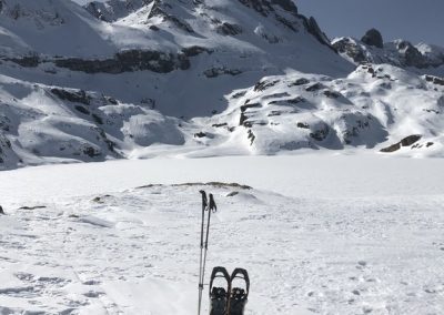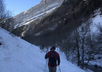 Our first days route started from Portalet and we snowshoed on the Spanish side of the border heading round under the Foratata peak. We had great views to the south over the whole of the Valle de Tena and also across to the three thousand metre peaks of Balaitous and Los Infiernos. We saw a few chamois perched on the ridge above us, watching our every move.